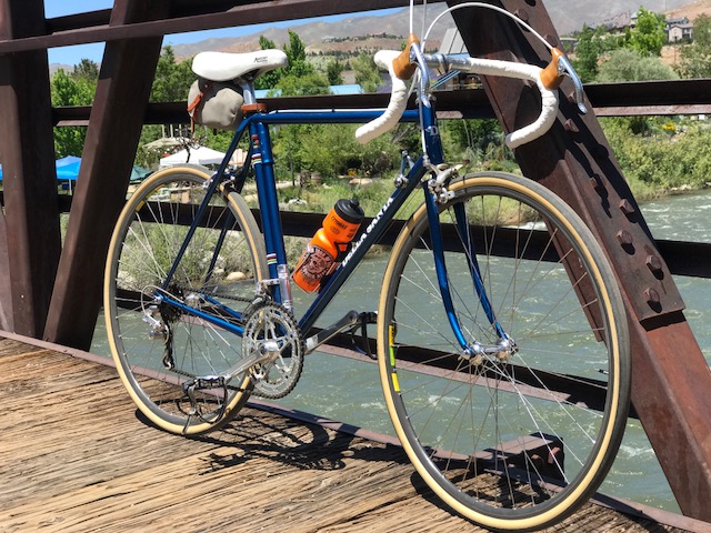 ![]() I don't know how uniquely in a position I am to review the differences in ride quality of Roland Della Santa's bike frames. Truth be told, I know numerous people who own more than one of the master framebuilder's bikes. That says something in and of itself that owners come back wanting more, or something slightly different in the range of the DS frames. My Della Santas are fairly distinct but only two are strategically so. My first, the Molteniesque orange was purchased in part with some money I received from my inheritance when my Grandma died. The idea of honoring her, and my love of good craftsmanship, seemed like a good idea. Roland built me a classic racing bike that he even claimed was the lightest frame he'd every built. The bike is custom fit and feels perfectly attuned to my body. The most recent DS I purchased took the same geometry as the above but stretched the tire capability to 35mm (just barely). It has that nimble road race feel with a bit more rubber to feel more secure on a typical day of riding in Reno for me, which tends to include mostly pavement with a few diversions onto dirt roads. It's still underbiking on trails but quite capable for some light dirt/gravel action. Strangely, the Blue Della Santa, a 1979 frame, spaced to 120mm in the back, bridges the experience of the other two. It takes a wider tire than the Orange one, and has a tight racy compact cockpit. It's also a bike that pushes me towards the big ring more than the others. It's smooth 5 speed friction shifting has a tendency to keep me focused on my spinning, as opposed to constant fine tuning of gear ratios. It also happens to feel fast and incredibly smooth. I picked this up for rather cheap from someone unloading it and eventually it might turn into my L'Eroica ride. Below is a gallery of pics of then bikes over the last couple of years in action. Throwing a leg over any of them brings me intense joy.