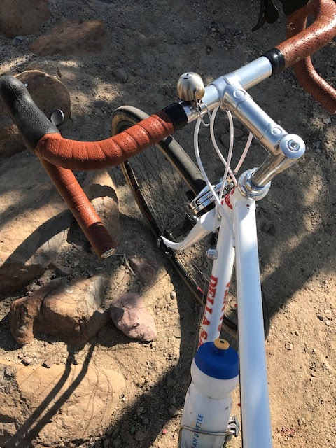 The bulk of the other parts were also from the Ritchey archive. The seatpost, stem, bar, headset, grips, tires, filled out the rest of the bike. On top of that seatpost sat a stately black Brooks Leather Imperial saddle. It was a nice touch as was the Bridgestone Bicycle bell attached to the bars to signal to other users on the trail.