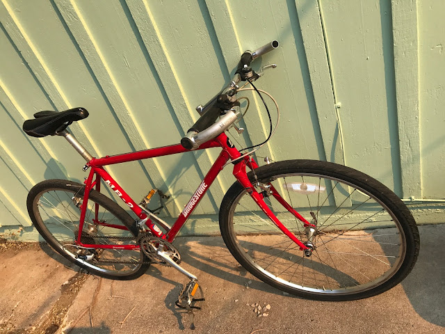 All this is to say, I lucked into replacing a bike that I've regretted selling for years. And it turned out to be a local easy purchase at a very low price. My 1993 Bridgestone MB-2 was originally purchased new from Deluxe Bicycle Works and was a great bike for the Midwestern single track. I converted it over the years into something of a more citified bike with narrower city tires not unlike the ones put on by the original owner of this newly acquired MB-2. It's not quite as in nice shape as mine from year's back. But, a little elbow grease and love should get it back into good riding shape. It still has a sweet Shimano XT group on it, nice Ritchey components, and that beautiful biplane fork crown. A few photos to peruse until I spend some more time getting it all set up.