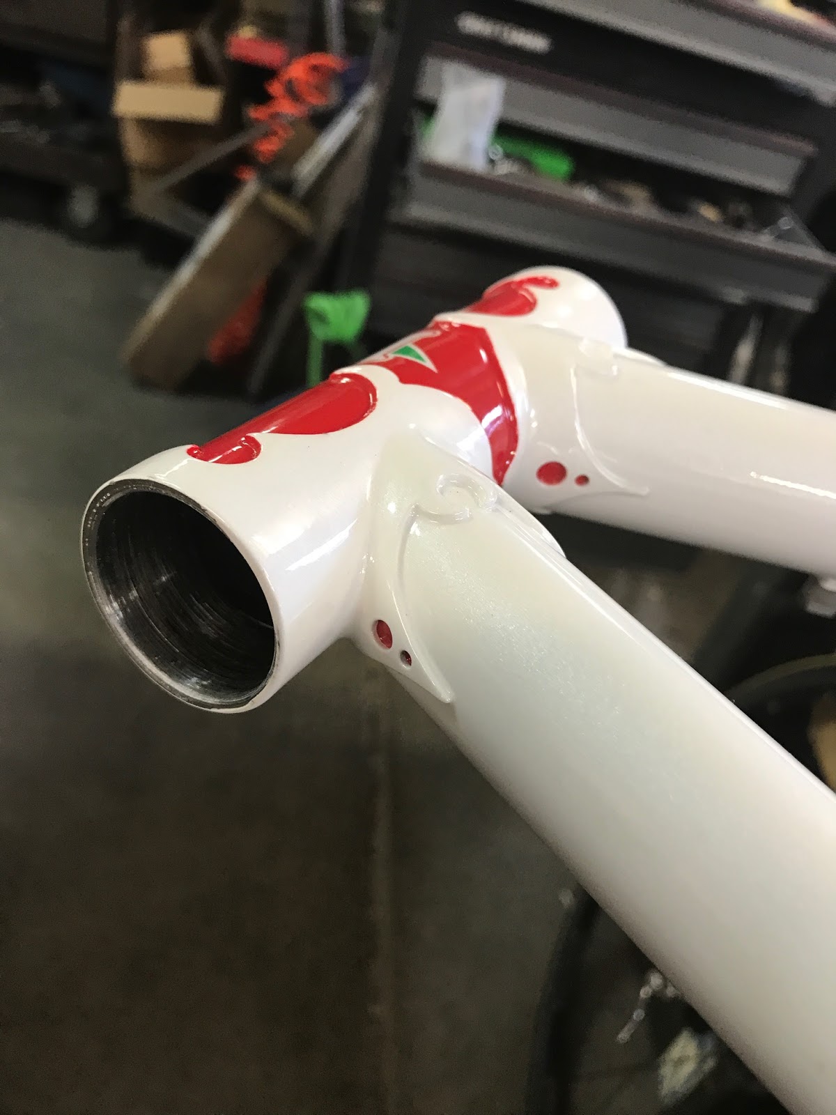 ![]() While waiting for my order at Laughing Planet the other day I snapped a few photos of their Greg LeMond and Roland Della Santa exhibit. I have to say I'm always intrigued by these less obvious color schemes and how classy they can look on a beautiful handmade bicycle frame. I never would have thought an olive green with yellow scheme would look so good but it works!