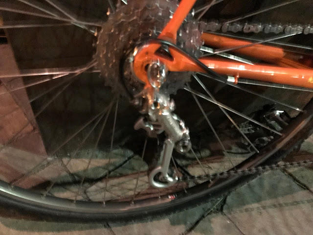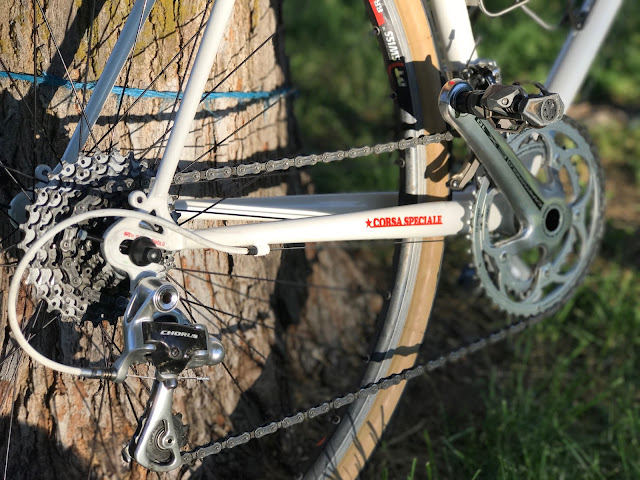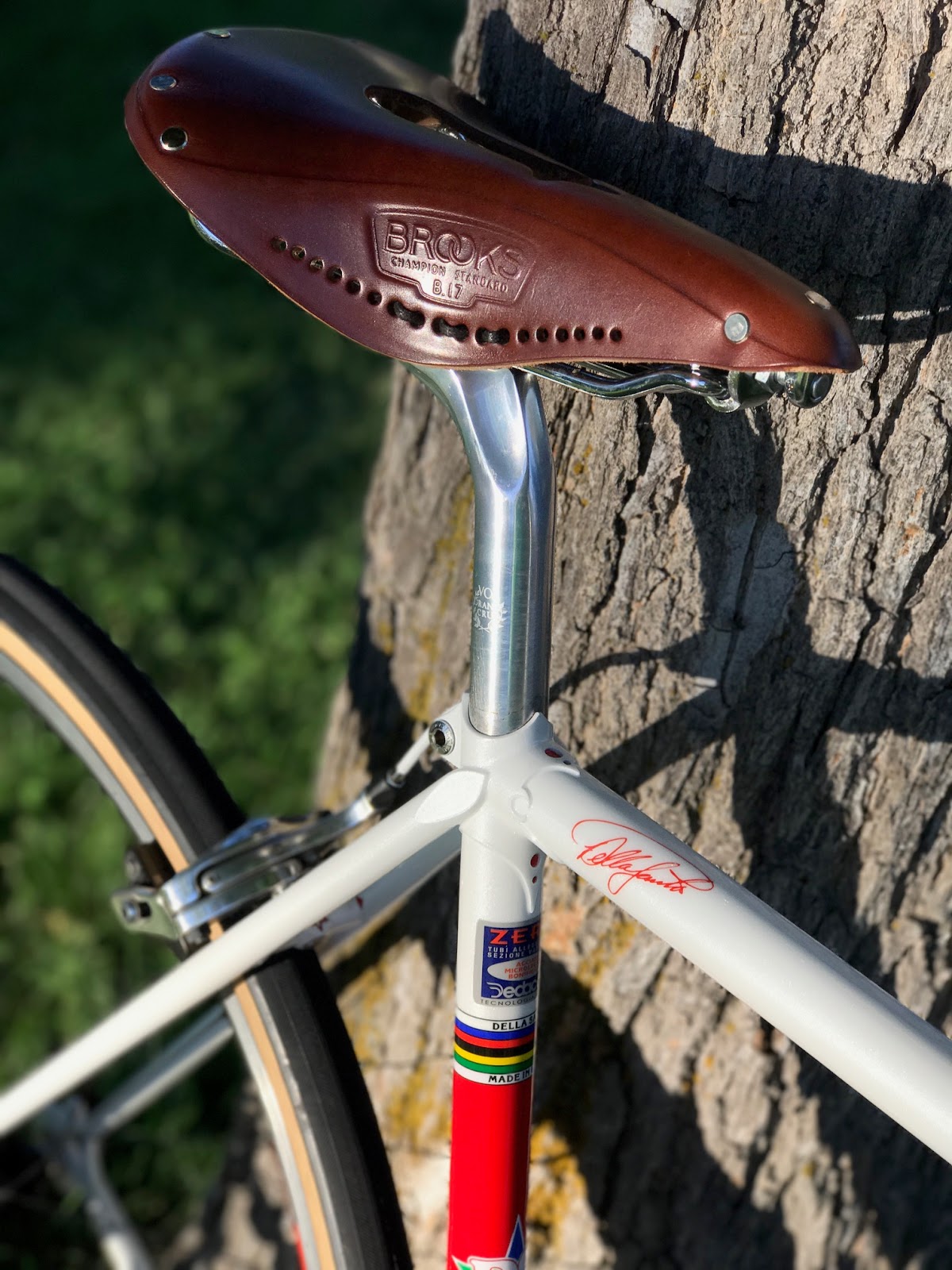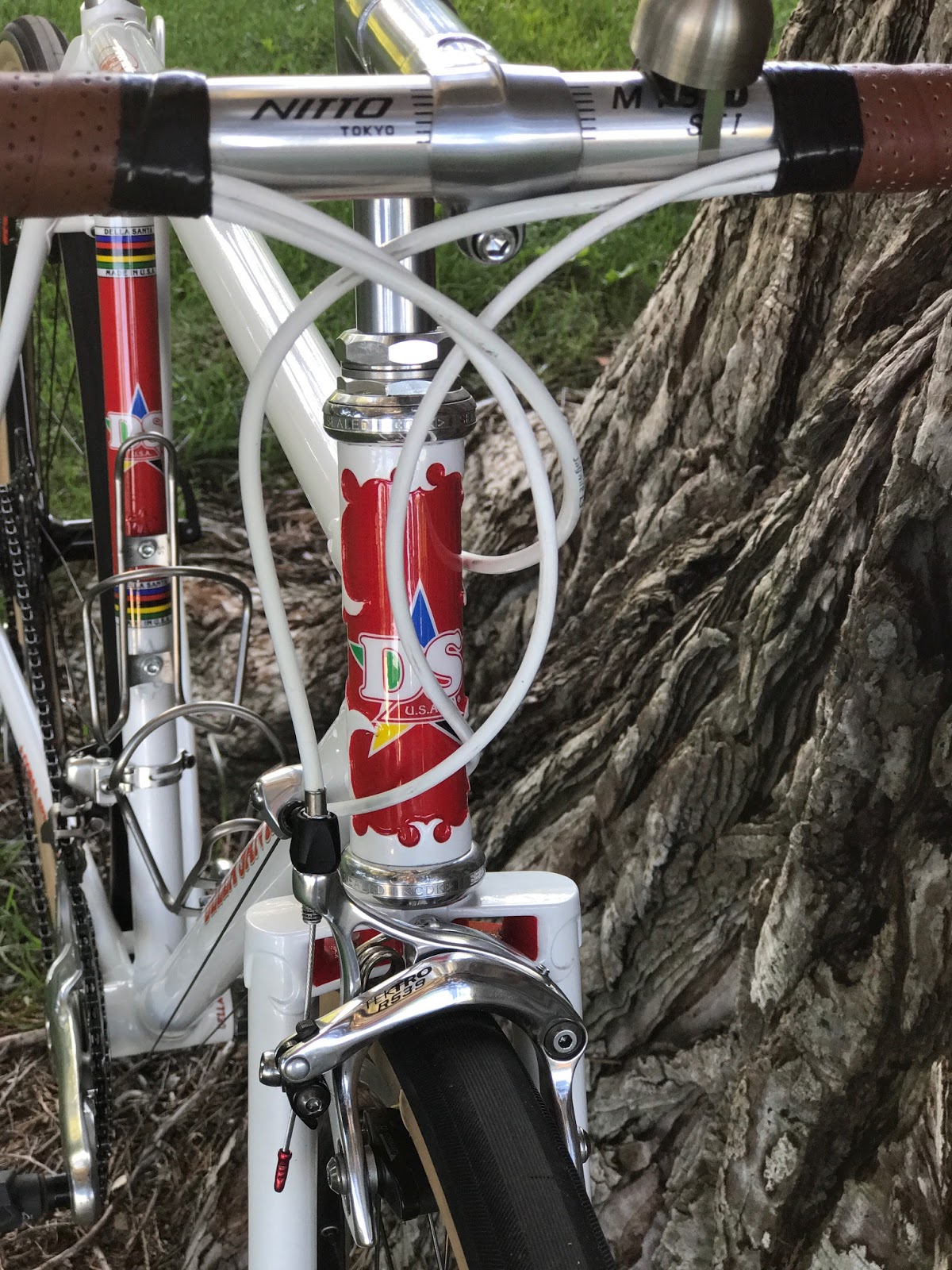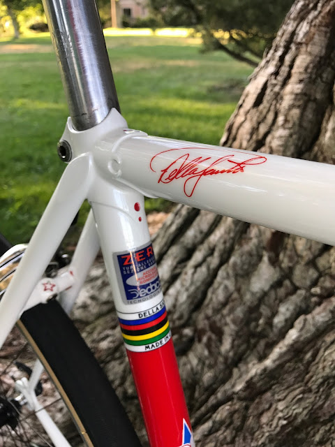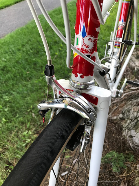 It's pretty amazing to ride a bike that is 38 years old and discover that it gives up very little in the way of performance. Yeah it's lugged steel but with the downtube shifters and sewup wheels/tires it is remarkably light. More importantly, something about the tubulars just hums as it floats over the tarmac is pretty extraordinary. It's a bike that begs to get me into the drops which almost never happens on my modern road bike. More importantly, it inspires me to push it in the big ring which is not something I often do. A 10 speed bike that hums on the flats and sings on the climbs and descents. And it happens to be made by one of the premiere bike builders from the history of American Cycling...what's not to love!?