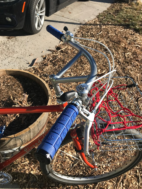 I don't think I posted anything about the new/old configuration of my Rivendell Allrounder. One of my mainstay bikes since the late 90s, this bike still is eye-popping and looks close to new even though it has been ridden thousands of miles, including some pretty good loaded bike tours, over the years. The current configuration includes a switch out of the bars and pedals and generally making it more early era mountain bikey. The Deerhead shifter/derailleur setup is pretty blingy if not as crisp as the '93 XT setup I've been considering switching over to the bike. The bars are the main difference and they just happen to fit the feel of this bike perfectly.