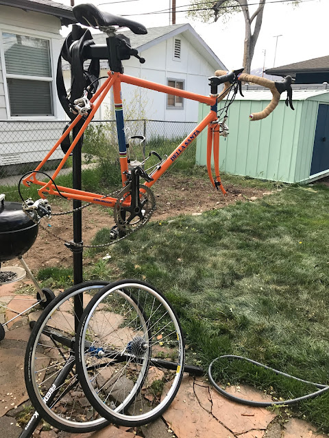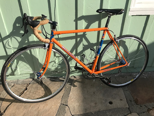 I don't do this often, certainly not as much as I should.  But it sure feels nice riding a gleaming bicycle as nice as my Della Santa with the Molteni Orange paint scheme.  Right before I get it dirty from use again.
